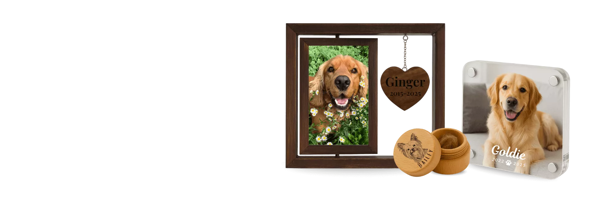Our personalised dog memorial gifts are made from quality acrylic (with or without LED light), warm wood for ashes, fur,...Read more