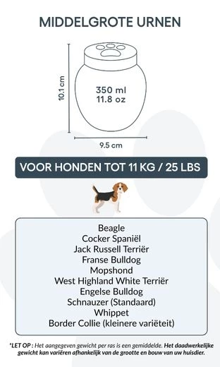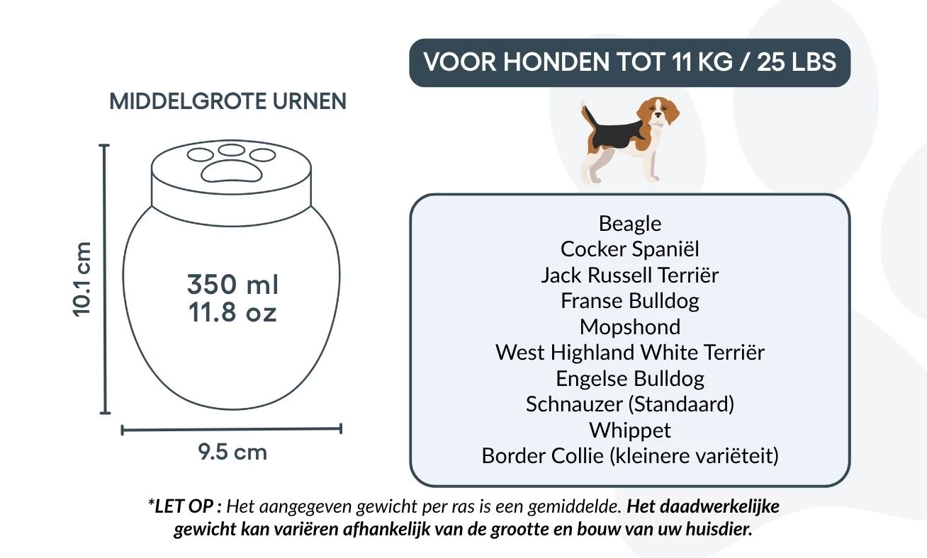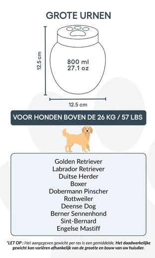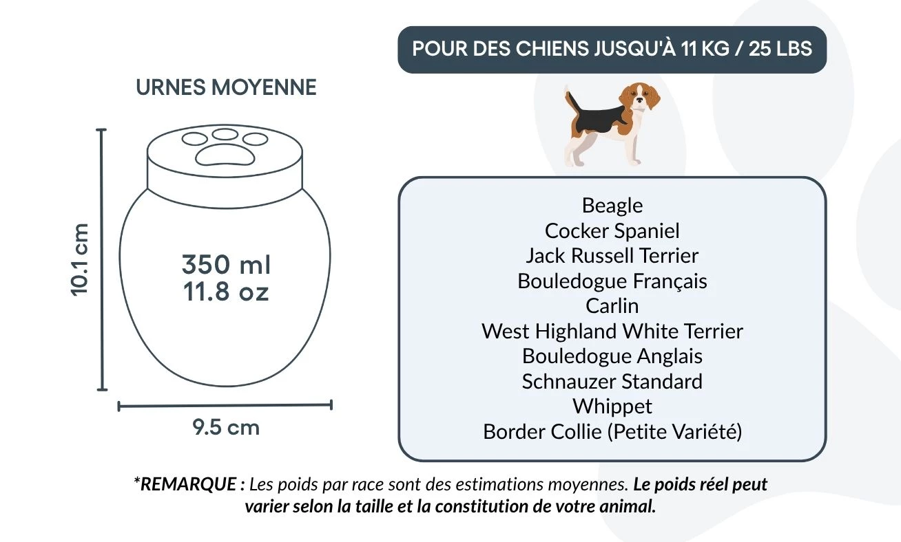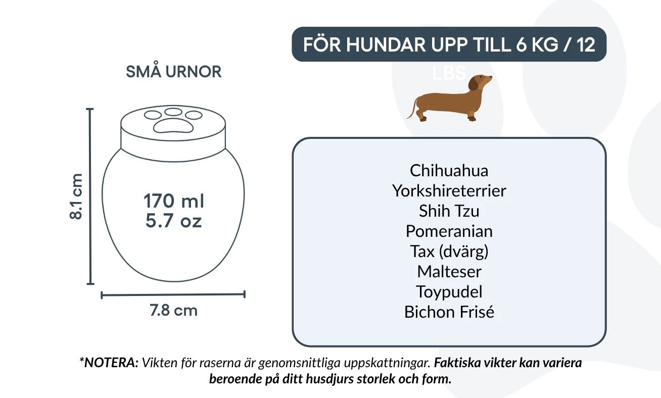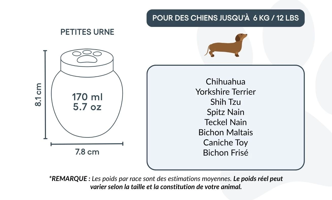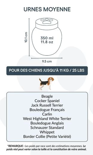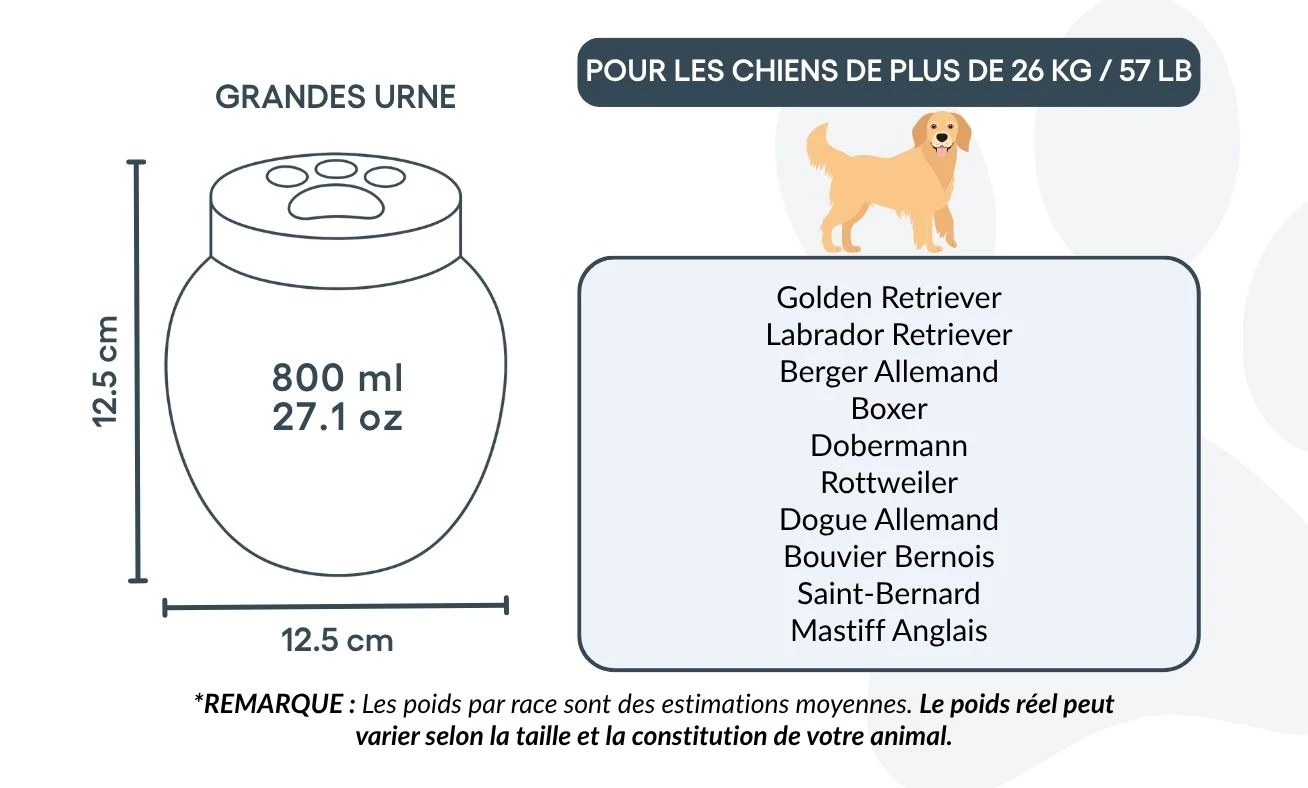 Available in multiple sizes to accommodate dogs of all breeds, this photo urn is ideal for pet cremation and remembrance.