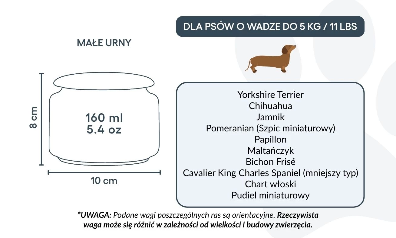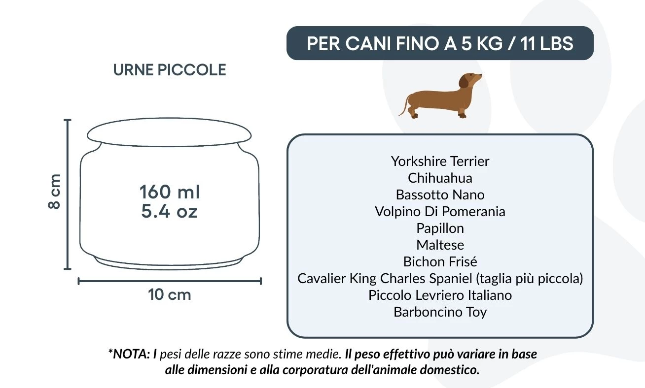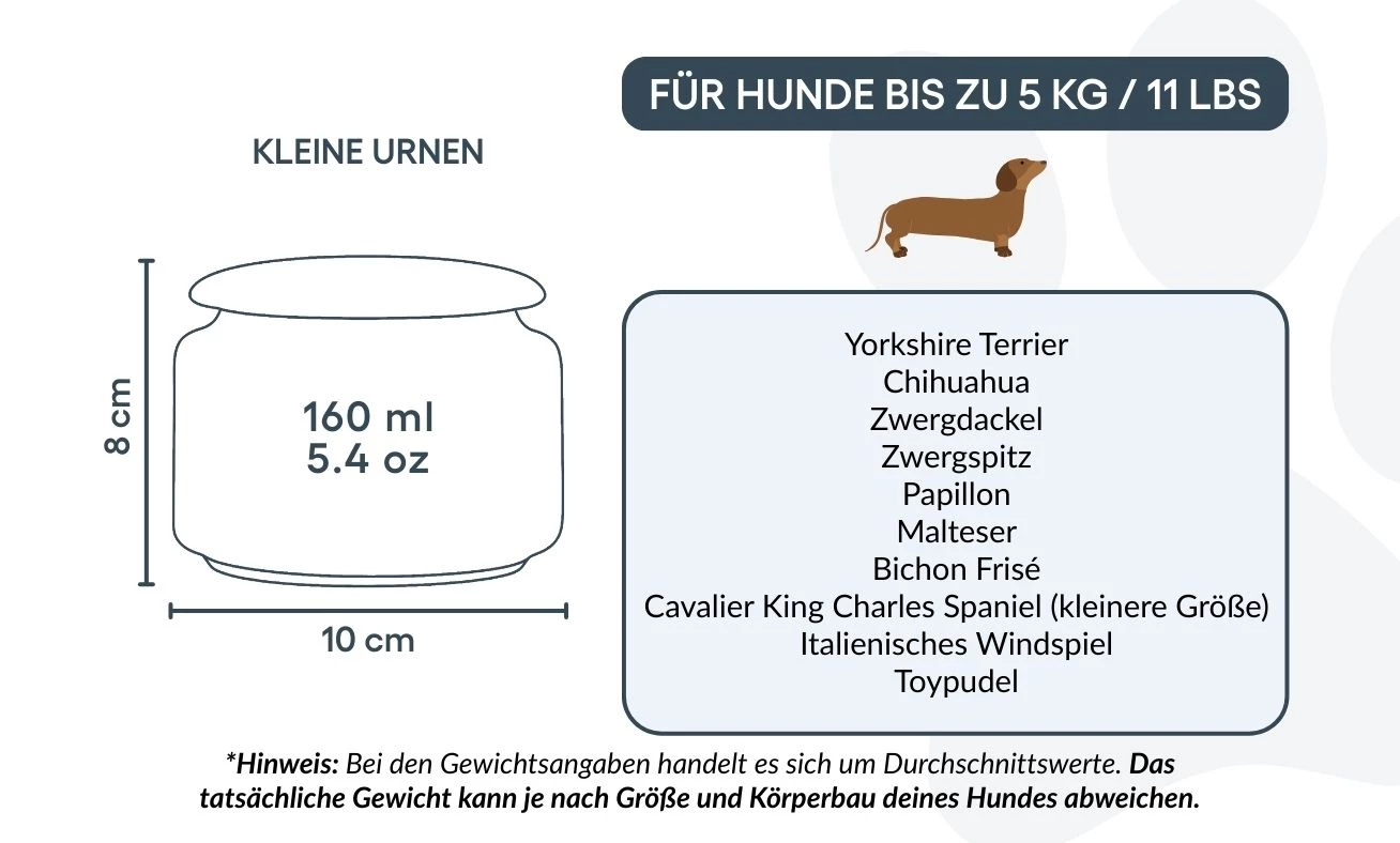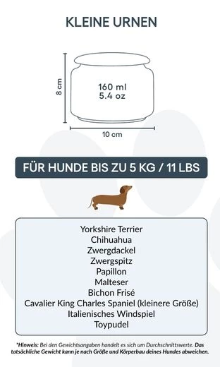 Ideal for small dogs up to 5 kg / 11 lbs, this urn offers a heartfelt way to honour your companion’s memory. Its gentle smooth finish and elegant line illustration create a calming presence, bringing quiet comfort in moments of remembrance. For those who wish to preserve only a portion of their beloved dog’s ashes—whether for sharing with family, creating multiple keepsakes, or combining with other memorials—this urn can also be a meaningful choice for larger dogs. It allows you to keep a part of them close, in a way that feels right for you.