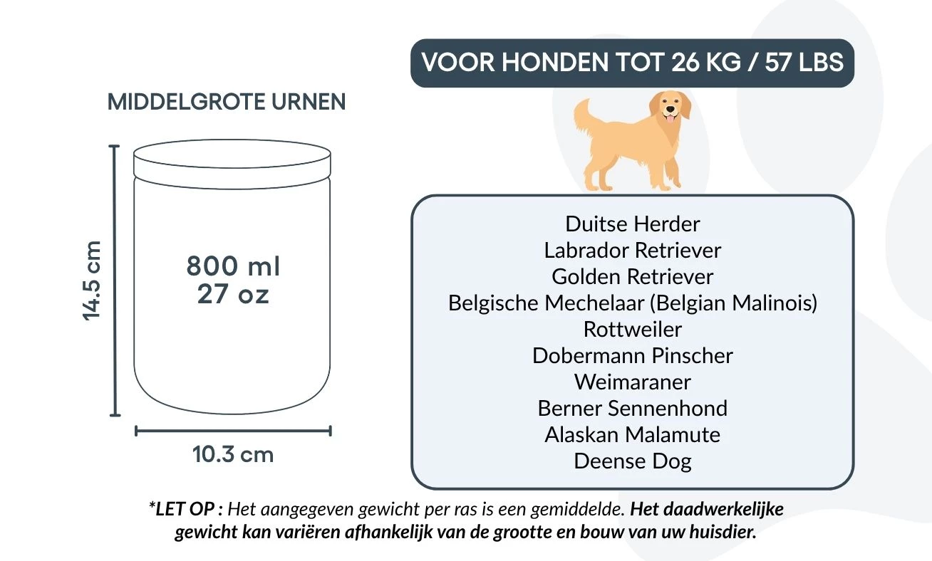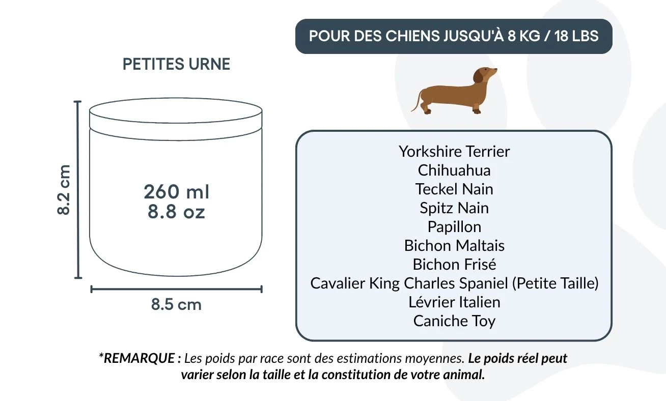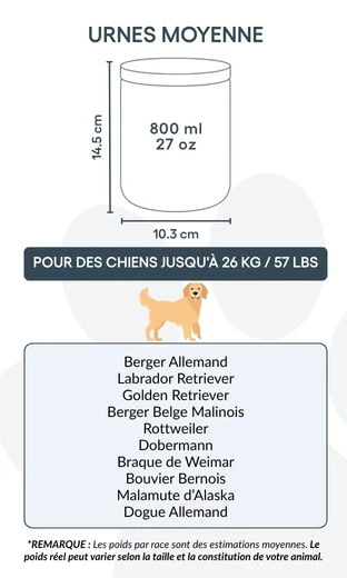Available in two practical sizes to suit small and medium dogs, it offers a respectful and personal way to say goodbye. A thoughtful option for pet cremation, this urn is a lasting keepsake for any dog owner.
