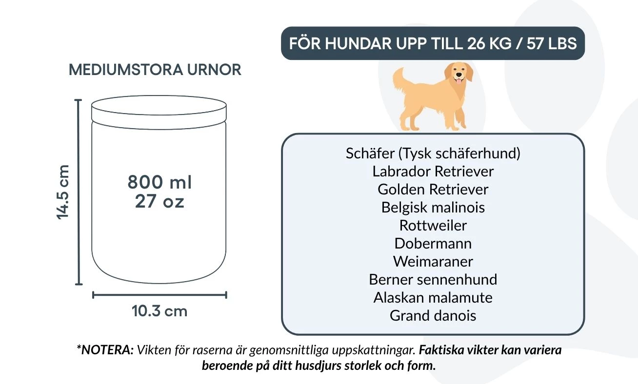 Made from smooth white or black ceramic with a natural wood lid, this dog urn blends seamlessly into your home while securely holding your pet’s ashes. Ideal for both small and large dogs, this photo urn provides a respectful resting place and lasting keepsake. Whether for cremation or display, it brings comfort and a sense of closeness.