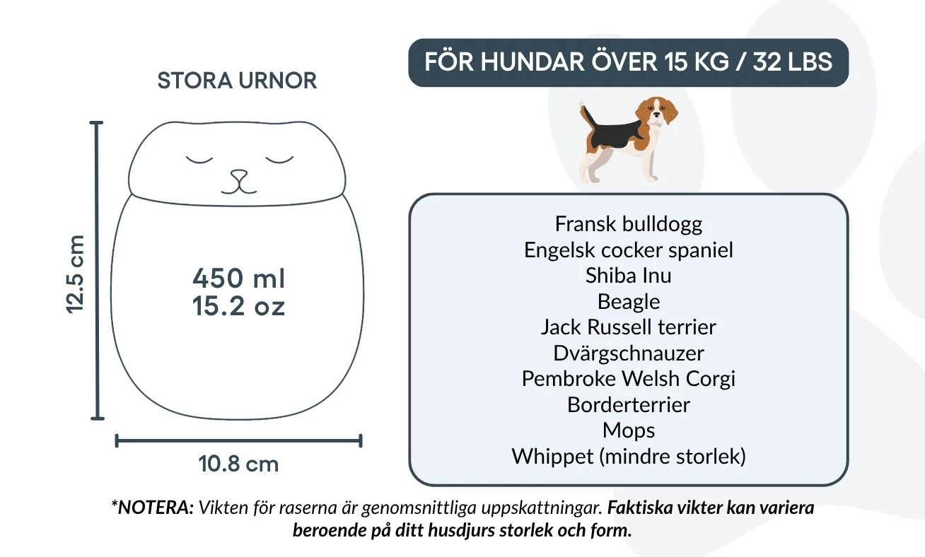 Crafted from smooth, high-quality ceramic, this personalised dog urn features a secure lid to safely store your dog's ashes, while the calming design makes it ideal for indoor display. The sleeping pet lid adds a serene touch—perfect for honouring a life filled with loyalty and love.