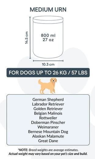 Perfect for pet cremation and remembrance, this ceramic pet urn is available in two sizes for dogs up to 26kg. Whether placed on a shelf, mantle, or memorial table, this urn is more than a container—it’s a heartfelt tribute to a loyal companion.