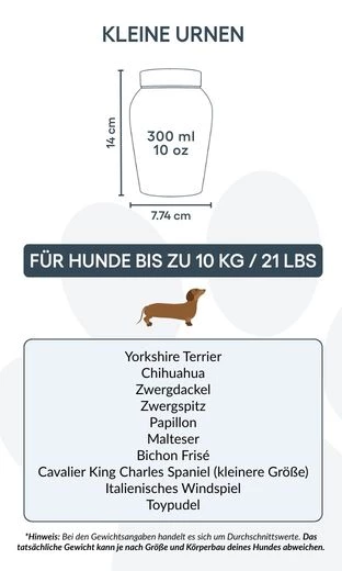 Create a heartfelt tribute to your beloved dog with this Personalised Stainless Steel Dog Urn, featuring a paw print design with your pet’s name and life dates. Thoughtfully designed to hold their ashes with dignity, this cremation urn serves as a meaningful memorial and keepsake for years to come.