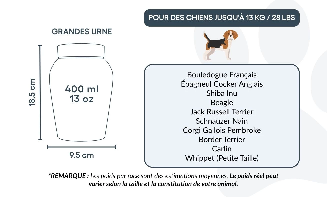 Honour your beloved dog with this Personalised Stainless Steel Dog Urn with Photo, thoughtfully designed to preserve their ashes with dignity and grace. This photo urn allows you to honour their memory by adding a cherished image, name, and life dates—transforming it into a truly heartfelt pet memorial.