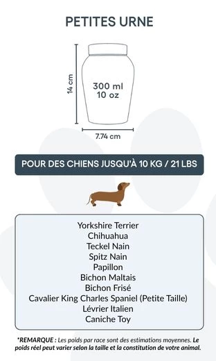 Small: 7.74 cm (W) x 14 cm (H) x 7.74 cm (L) | 300 ml / 10 oz – suitable for dogs up to 10 kg / 21 lbs