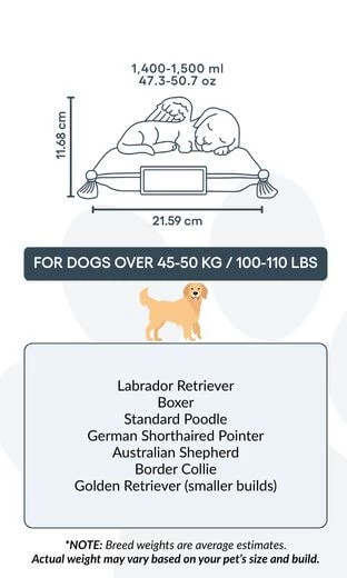 Common breeds that typically fit: Labrador Retriever, Boxer, Standard Poodle, German Shorthaired Pointer, Australian Shepherd, Border Collie, Golden Retriever (smaller builds).